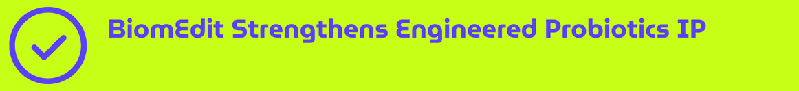 BiomEdit has received foundational patents covering its engineered probiotic delivery platform, including genetically modified Lactobacillus reuteri strains and associated compositions, methods of use, and microbial delivery systems that enable in situ expression of therapeutic biomolecules.