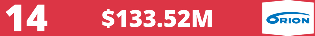 | 14 | Orion | 114.66 | 133.52 | 16.44 |